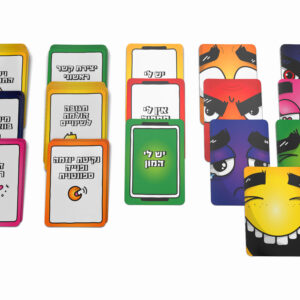 - 6 רגשות בסיסיים: כעס, פחד עצב, שמחה, אהבה, גועל – 8 קלפים מכל רגש + 6 קלפי הזעם – סך הכל 54 קלפים.